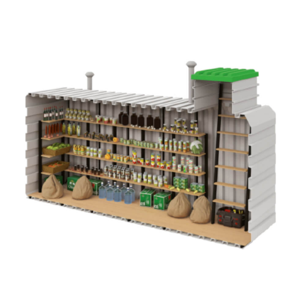 - Der Erdkeller verfügt über ein Volumen von 17,5 Kubikmetern.