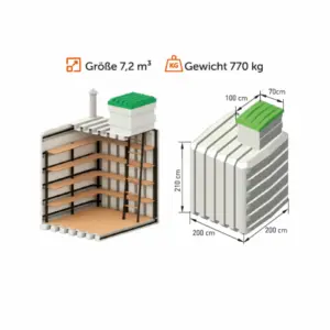 - Der Erdkeller verfügt über ein Volumen von ca. 7,2 Kubikmetern.