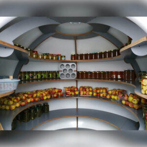 - fertig installierte Regale auf 5 Ebenen aus lackierten, wasserdichtem Sperrholz 18 mm
