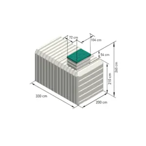 - Der Erdkeller verfügt über ein Volumen von ca. 12,1 Kubikmetern.