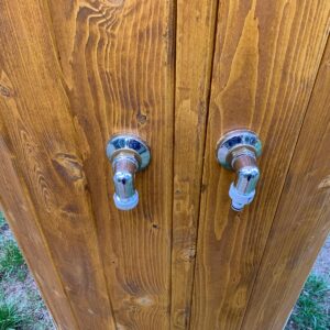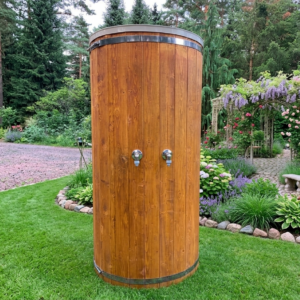 Hochwertige Gartendusche aus Holz im Fassdesign