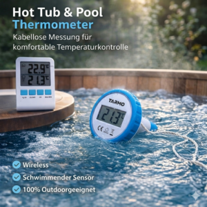 Mit diesem Hot Tub Thermometer mit Funkanzeige behalten Sie die Wassertemperatur jederzeit im Auge – bequem und zuverlässig.